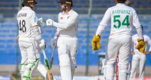 کراچی – پاکستان اور نیوزی لینڈ کے درمیان 2 ٹیسٹ میچز کی سیریز کے آخری مقابلے میں سرفراز احمد کی محنت رنگ لے آئی، ٹیل اینڈرز دوسرا میچ ڈرا کرنے میں کامیاب ہو گئے، دو ٹیسٹ میچز کی سیریز برابری پر ختم۔ پانچواں روز: نیشنل سٹیڈیم کراچی میں کھیلے گئے آخری ٹیسٹ میچ کے پانچویں روز پاکستان نے جب میچ …