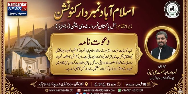 اس سلسلے میں آل پاکستان نمبردار ایسوسی ایشن رجسٹرڈ کے بانی و چیئرمین اور ملک بھر کے نمبرداروں کے روح رواں نمبرادار راجہ عظمت علی کیانی نے بتایا کہ اسلام آباد کنونشن کا مقصد نمبرداروں کے حقوق کے ساتھ ساتھ ریاست اور نمبرداروں کے درمیان تعلق کو مظبوظ بنانا ہے کیونکہ ریاست کے اصل عوامی نمائندے تو نمبرداران ہیں جو ہر وقت بغیر کسی مفاد کے ریاست کے شانہ بشانہ قوم اور ملک کی خدمت کر رہے ہیں۔
