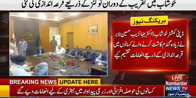 ڈپٹی کمشنر خوشاب ڈاکٹر جہانزیب حسین لابر نے زیادہ گندم کی کاشت کرنے والے خوش قسمت کسانوں کے درمیان مقابلے کے سلسلے میں ٹوکن اُٹھا کر قرعہ اندازی کی۔