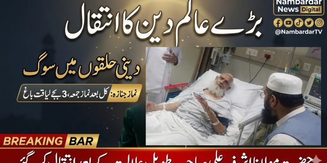 جانشین شیخ القرآن حضرت مولانا اشرف علی صاحب طویل علالت کے بعد انتقال کر گئے۔ مرحوم کی وفات سے دینی و علمی حلقوں میں گہرے رنج و غم کی لہر دوڑ گئی ہے۔